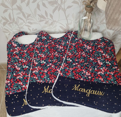 L'option "broderie" permet d'avoir le prénom en fil or (ou autre couleur sur demande) supplément 6€